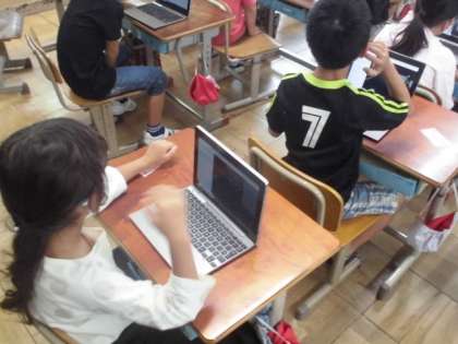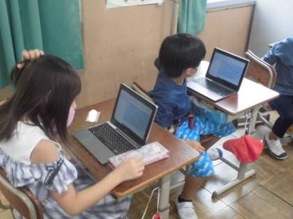 今日の算数では,タブレットを使って「かさ」の学習をしました。LやdLなどいろんな単位を学習したので,単位の換算の問題に取り組みました。先生から出された問題に答える時には,ロイロノートを使いました。自分の解答を書き込んだらどんどん提出しました。