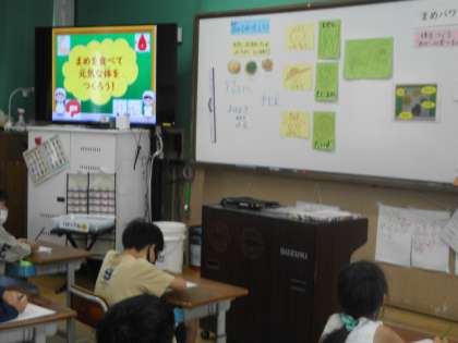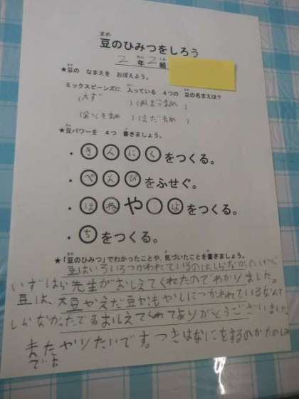2−2で4校時,「豆のひみつをしろう)」をテーマに学習しました。