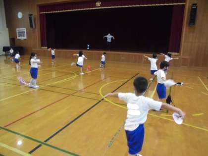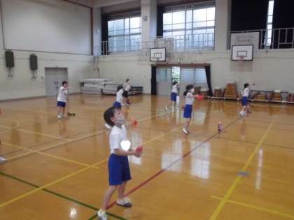 体育では,表現運動に取り組みました。どんな動きをするのか聞いた後,ゆっくり動いてみました。動きの中で気をつけることがあるので,注意しながら練習していました。