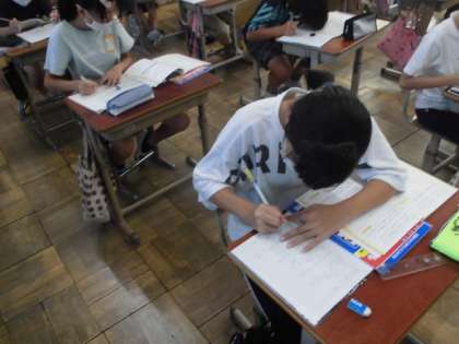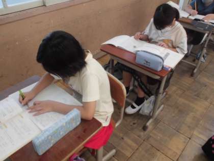 算数の時間には,「割合」の問題に取り組みました。関係図に表された問題から,式を立てたり答えを求めたりしました。とても静かな雰囲気で集中して考えられていました。
