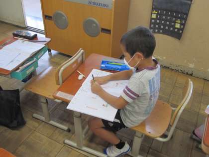 1学期には,ひらがなを1文字ずつ習ってきました。2学期に入り,カタカナそして漢字の学習が始まっています。