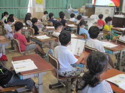 教科書にのっている,はじめの文字が「あいうえお」や「あかさたな」になっている折句を繰り返し読む中で,言葉の音やアクセント,リズムや間(ま)などの,おもしろさや楽しさを感じていきました。