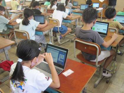 デジタルドリルで,習った漢字の復習や,計算の学習をしています。