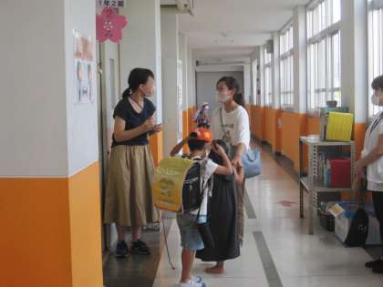 一昨日と本日,1年生の児童と保護者対象に,引き渡し訓練をおこないました。