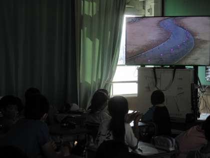 流れる水の実験動画を見て,流れる水には,土地を侵食したり,石や土などを運搬したり堆積させたりする働きがあることなど,今までの学習内容を振り返りました。