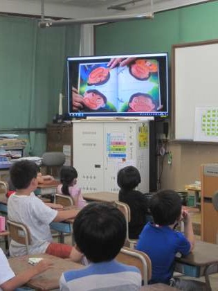教室で,ありすのいえのボランティアさんが作ってくださった読み聞かせの動画をみました。