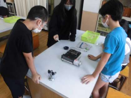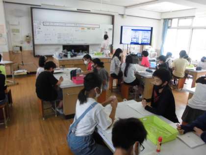 石灰水や炭酸水,アンモニア水など5つの水溶液を用意しました。泡が見えるものがあったりにおいがするものがあったりしたことから,それぞれの性質を生かして見分ける方法がないか考えました。さらに熱してみることで何か残らないか実験してみました。