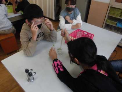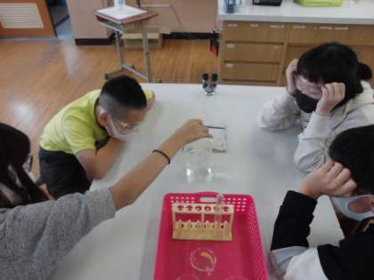 理科の時間には,食塩水や塩酸などいろいろな水よう液の性質について学習しています。今日は,炭酸水を取り上げ,何がとけているのか調べました。実験器具の使い方を動画で確認した後,早速,炭酸水を試験管に入れたりお湯で温めたりしました。何か泡のようなものが観察できました。