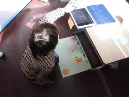 総合の時間には,アニメーションづくりの続きをしました。必要なパーツを作っておいたので,今日は,順番に並べていきました。少しずつ変化を加えながら1場面ずつ撮影して,最後につなげると動いているように見えます。自分のイメージに合うように慎重に撮影していました。出来上がりを見て,うまく動きがつながっていると,嬉しそうでした。