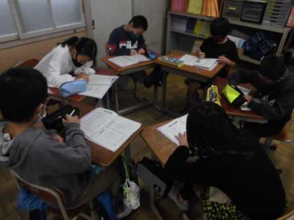 もうすぐ山の家宿泊学習です。今日はしおりを見ながらグループごとにめあてや役割分担を決めました。野外炊事もするので,調理実習の経験を生かしてほしいです。5年生にとって初めての宿泊なので,楽しい時間となるようにみんなで協力してほしいです。