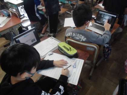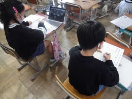 総合的な学習の時間には,自分達の学校のいいところを見つけて紹介する準備を進めています。グループで決めたテーマをもとに資料を集めてきました。ようやく整理できてきたので,今日は,発表に向けて組み立てを考え,原稿を作っていきました。