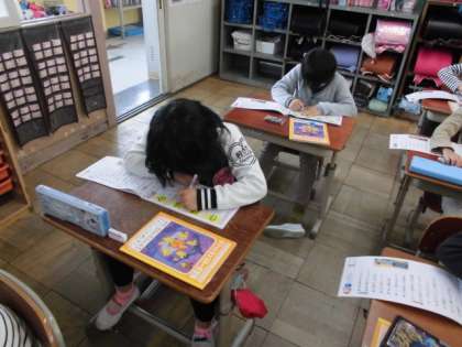 漢字ドリルを使って漢字の学習をしました。今日,習う漢字は,「合う」「作る」「活」などです。書き順や画数だけでなく線の長さも確認したり「生活」のような使い方も合わせて知りました。習った漢字は,どんどん使うようにしてほしいです。