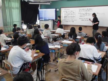 ともなって変わる2つの量についてどんな関係になるのか考えました。今日は,四角柱の高さと体積の関係をXとYを使って式に表しました。実際に数字を入れて,どのように変わっていくのかグラフにも書いてみました。