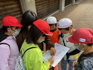 各グループ出発し,ポストを見つけていっています。課題の答えが何か,次のポストはどこにあるか,グループ内で話し合って決めていきます。どのグループもしっかり協力して進めているようです。