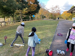 ただでさえ真っすぐ飛ばない中,今日は風は強く,なかなかディスクがゴールに近づいてくれません。そんな中でも,子どもたちはゴールめがけて一生懸命取り組んでいました。