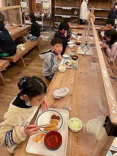 みんないっぱい食べて,元気いっぱい。この後は,一度部屋に戻って,荷物の整理をして,夜の活動「ナイトハイク」に出かけます。