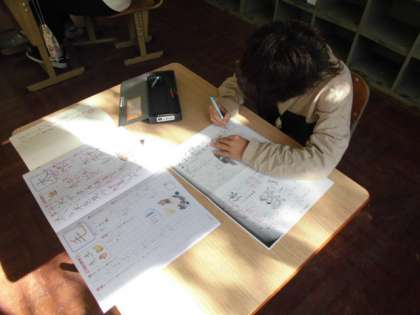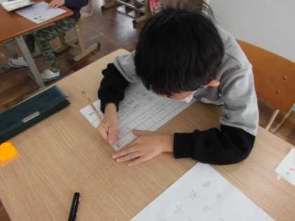 カタカナや漢字の学習をしました。自分の力に応じたプリントに取り組んだり新しい漢字を練習したりしました。なぞる時には,はみ出さないように丁寧になぞっていました。