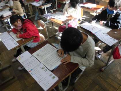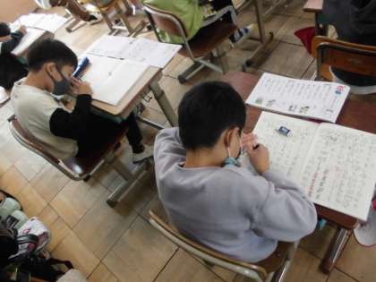 2年生になっても新しい漢字をたくさん学習しています。忘れないために使い方にも慣れておくといいです。今日は,漢字ドリルを使って,これまで学習した漢字の練習をしました。ただ同じ漢字を繰り返し書くのではなく,漢字を使った文をノートに書きました。