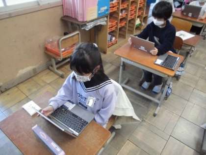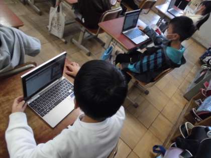 2年生もタブレットの使い方にずいぶん慣れてきました。算数ドリルができた人は,タブレットを出して,指定された問題を何度も解いていました。立ち上げから画面操作までとてもスムーズにできていました。