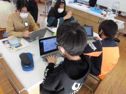 塩酸にアルミニウムがとけるということが実験から分かりました。今日は,とけたアルミニウムはどうなったのか考えました。泡が出ていたのでなくなったのか,まだ水よう液の中にあるのか,確かめるために蒸発させてみました。すると,白いものが出てきましたが,アルミニウムのように光っていません。どうやら別のものになったとロイロノートに振り返りを書いて提出していました。