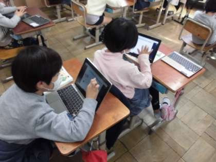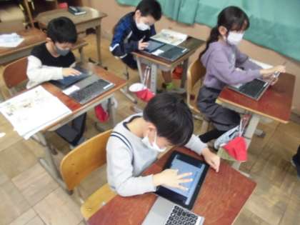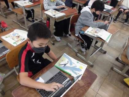 国語の時間には,かん字の広場の学習をしました。これまでに学習した漢字なので,覚えている字もたくさんありました。今日は,ロイロノートを使って出てきた漢字を書きました。お互いにクイズを出しながら漢字の書き取りをしている子もいました。