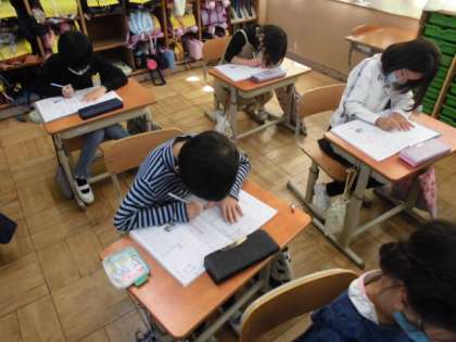 今日は「年」と「立」を学習しました。だんだん画数が増えてきますが,丁寧に書くように心がけていました。また,これまでいろんな漢字を学習してきましたが,今年の漢字をクラスで話し合いました。みんなの投票した結果,今年の漢字は「水」に決まりました。