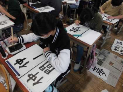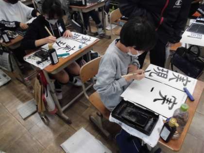 今日の書写では,「現実」「夢」「仲間」「友情」の中から1つ選んで書きました。文字の組み立てや大きさなどそれぞれで気をつけることは違ってきます。これまで学習してきたことを生かして丁寧に書いていました。