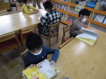 学校の図書館に行って本を読みました。いつも読んでいる本を選ぶ子もいれば,新しく小説に挑戦する子もいました。自分の気に入った本を手に取って読みながら想像を広げてほしいです。また,新たなジャンルの本もぜひ読んで,新しい出会いを楽しんでほしいと思います。