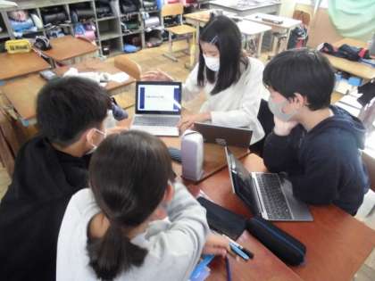 金曜日の交流会に向けて,グループでリハーサルをしました。これまで自分で調べて作ってきた資料を見せながら京都の魅力を発表します。自分の伝えたいことを原稿にしているので,読みながらスライドをかえていきました。まだ,原稿を読むことに一生懸命なので,当日は,相手に伝える意識をもって発表に臨んでほしいとと思います。
