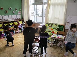 1年生は明日の梅北っ子「まなび」交流会に向けて,最後の準備をしました。自分たちの遊びのお店をする教室で,机や看板を用意したり,どんぐりでつくったものを置いたりとお客さんを迎える準備を進めます。その中で,遊び方を説明したり,同じお店の子で遊びを試したりしながら,子どもたちはより楽しめるように声をかけ合っていました。明日,保護者の方や友だちに自分のお店に来てもらえるのがとても楽しみなようでした。