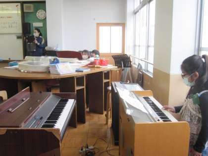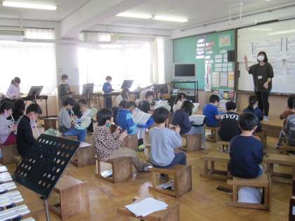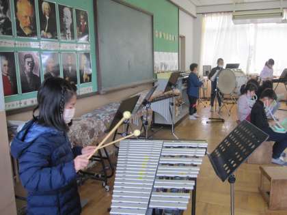 今日は,全ての楽器のいろいろな音の重なり合う音の響きを感じながら,全員で合奏しました。
