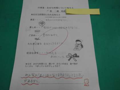 行事食について知ろうをねらいにして主に【おせち料理】について学習しました。