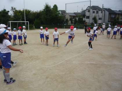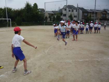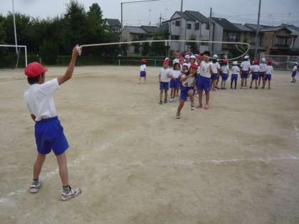 今日は全校の子どもたちで運動会のたてわり大縄跳びの練習しました。子どもたちは,普段のなかよし遊びで練習してきた成果を出し元気良く数えながら大縄跳びを楽しんでいました。運動会本番でも日頃のなかよし遊びのときとと同じように,1年生から6年生までが協力し合いながら大縄跳びにチャレンジしてほしいと思います。