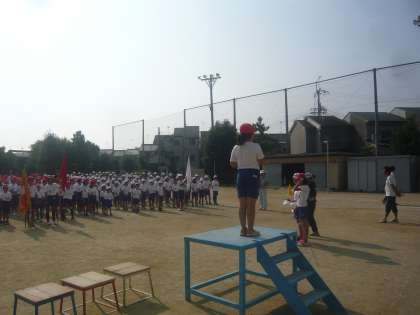 体育科の学習では運動会の入退場の練習を行いました。4年生は4回目の運動会ということもあって手順良く入退場を行うことが出来ました。また,整列も全校の子どもたちのお手本になるほどきっちり並び,話している人をしっかり見る様子がみられました。