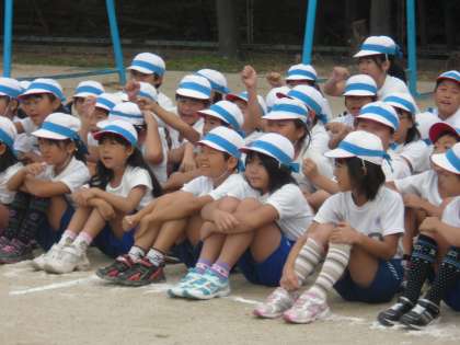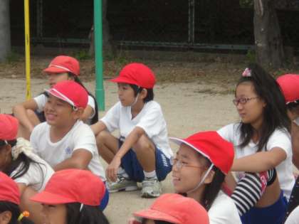 今日も全校練習がありました。応援練習では団長さんに合わせて大きな声を出していました。色別種目の玉いれや、なかよしグループでの大縄大会もクラスでの練習成果を出せていました。