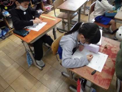 生活科では,クロッカスのきゅうこんをかんさつしました。手のひらサイズの球根ですが,大きさや形,色などじっくり観察していました。気づいたことを文や絵で記録していました。球根の表面にある細い線や白くとがった部分など細かいところまで詳しく観察できました。