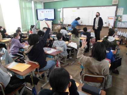外国語の時間には,ものの値段の言い方を学習しました。いくらか知りたい時は「How much is 〜?」と尋ねます。しかし,値段を伝えるためには,値段の言い方も知る必要があります。10や100などの言い方を確認した後,ものの値段を予想して発表していました。