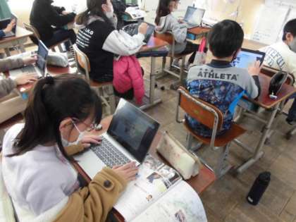 社会の時間には,古くから伝わる技術を今の生産にどのように生かしているのか調べました。例えば,福井県鯖江市というところでは,国内産のメガネフレームのほとんどを生産しています。一体,どのように生産し,どんなことに気を付けているのかロイロノートにまとめていきました。