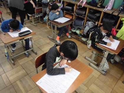 今日は,これまで学習してきた漢字のまとめです。少しずつ練習して覚えてきた漢字ですが,すべて覚えているかテストをしました。スラスラと書ける字もあれば,じっくり考えて思い出す漢字もありました。忘れないためにも漢字を使うようにしてほしいです。