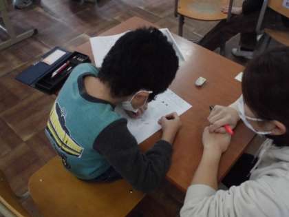 今日の算数では,プリントを使って学習しました。たし算や長さのプリントに取り組んでいる子もいました。ものさしを使って長さを測ったり線を引いたりしようとがんばっていました。