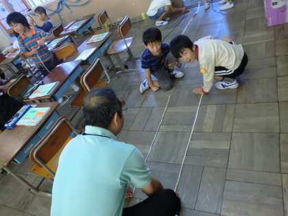 ひもを使ってながさをくらべたり、