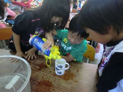 水をつかって かさをしらべたりしました。