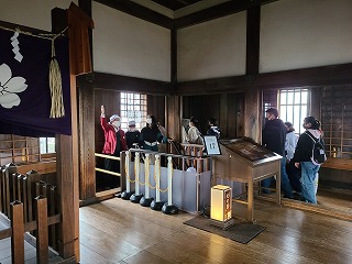 天守閣の最上階はかなり高く,姫路の街が一望できます。みんなで窓から殿様になった気分で景色を眺めていました。