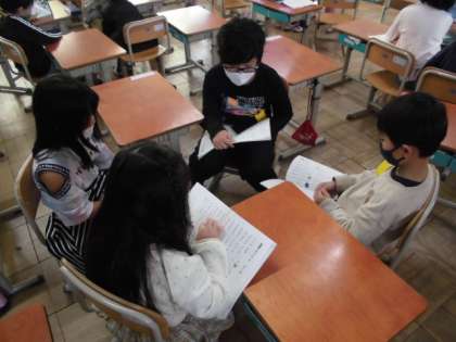 国語の時間には,みんなで音読をしました。「一月一日は お正月」「二月二日は みんなでこたつ」というように月日がそろった文を順番に読みました。読みやすくするためにグループごとに何度も練習をしたので,最後には,リズムよくみんなで読めていました。