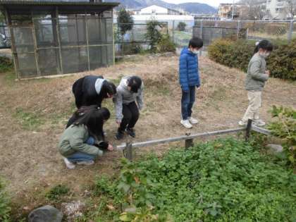 12月に入って寒くなり,冬らしい気候になってきました。今日は,生き物がどうしているのか観察しました。広場の草木の様子がずいぶん変わっていることや生き物がほとんど見当たらないことに気づいていました。