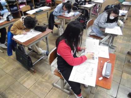 今日から3学期が始まりました。あいにくの天候ですが,登校の際には,元気な表情がたくさん見られました。始業式が終わったら,早速,3学期のめあてを立てました。2学期に立てためあてを振り返りながら,どんなめあてがいいか健康面・生活面・学習面のそれぞれにめあてを書きました。「おうちでお手伝いをする」「スリッパをそろえる」など周りの人のことを考えためあてもありました。
