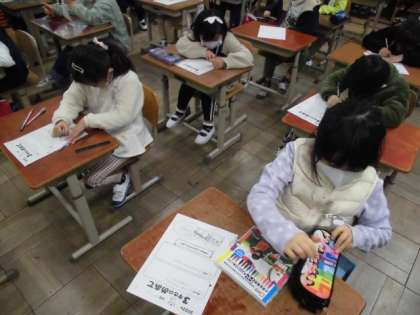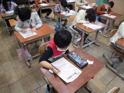 今日の2時間目に「3学期のめあて」を考え,学習面と生活面の2つ決めました。学習面では,「九九をがんばりたい」とか「漢字をおぼえる」といったことがありました。また,生活面では,「元気にあそぶ」とか「しせいをくずさない」といったことが書かれていました。短い3学期ですが,めあてを意識して,がんばってほしいです。