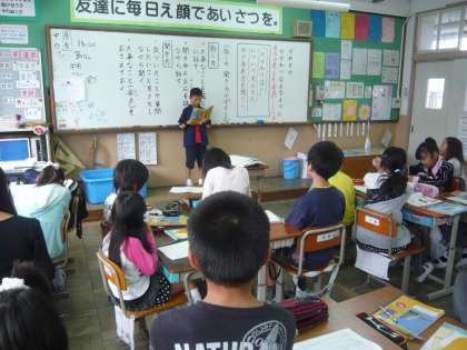 国語科では「だれもがかかわり合えるように」の単元で,調べたことをもとに自分の考えを発表しました。子どもたちは点字や手話などについて調べ,自分の考えを相手に分かりやすいように伝えたり友達の考えをしっかりと聴く様子がみられました。