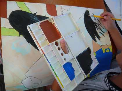 図工科では「お話の絵」の学習を進めています。子どもたちは完成に向けて細かい部分まで丁寧に色を塗り,気持ちを込めて場面を想像しながら学習しています。一人ひとりの思いが込められた素敵な作品がたくさん出来上がりそうです。