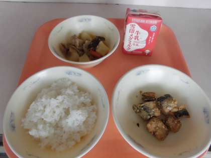 子供たちから,「『いわしのこはくあげ』は,カリカリでとってもおいしかったです。『豚肉と野菜のにつけ』は,具がやわらかくて,とってもおいしかったです。」と,感想をくれました。